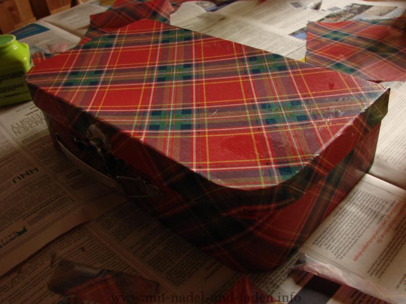 Für diese Idee entschied ich mich die Bärin nach dem CANDY Bear von Susan Hickson zu stricken. Die Wolle hatte ich zu Beginn des Jahres von Lotte geschenkt bekommen und schrie regelrecht danach, ein Kuscheltier zu werden. Da ich nicht auf die angegebenen Maße geachtet habe, war ich doch erstaunt, als die Bärin immer Größer geworden ist. Gleichzeitig habe ich einen Koffer mit Decopatch beklebt, mit dem Albärta dann durch die Welt reisen kann. So ganz zufrieden bin ich mit dem Machwerk nicht, aber es sei gesagt, dass dies mein erster Ausflug in diese Gefilde gewesen ist.