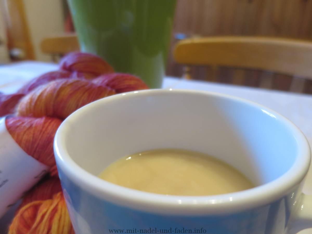 Ich bin mir bewusst, dass ich ohne Chemie auch bei der Wollverarbeitung nicht auskomme. Ganz ehrlich, ich bin froh, wenn ich die Socken einfach in der Waschmaschine ihre Runden drehen lassen kann und sie nachher wieder sauber herauskommen. Mir ist klar, dass ich das mit reiner Wolle nicht tun kann. Dafür hat Wolle einfach zu filzende Eigenschaften. Deswegen überlege ich mir schon sehr genau, wozu und für wen ich welche Wolle verarbeite.