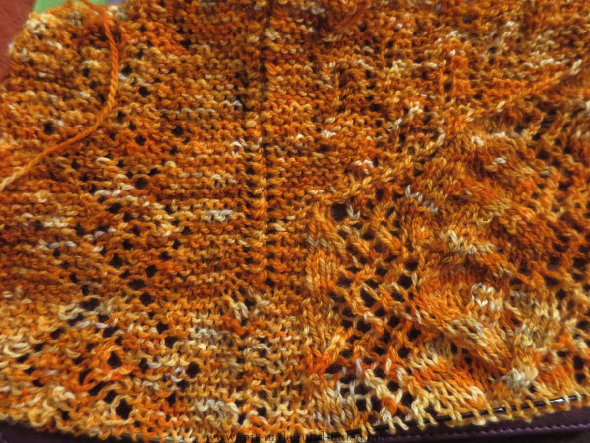 Es wird definitiv Zeit, dass ich weiter an der Abenteuer Stola von Barbara arbeite. Nachdem ich nun die zweite Hälfte angestrickt und mir zuvor den Kopf zerbrochen habe, wie ich es anstelle, dass die Mitte nicht sichtbar ist, hat sich das Problem selbst erledigt.